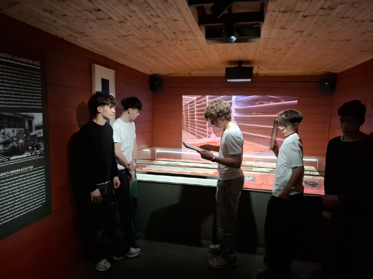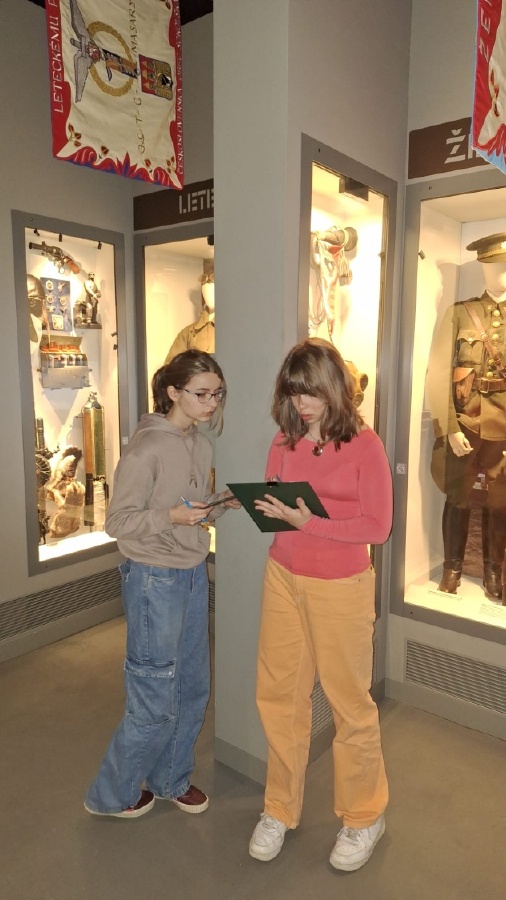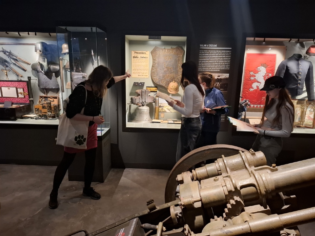 Žáci VIII. B absolvovali program Příběh Velké války. Během skupinové práce s dobovými dokumenty a exponáty z let 1914–1918 nahlédli na průběh první světové války z různých perspektiv – od legionářů a vojáků rakousko-uherské armády až po běžné obyvatele. Zkoumali, jak válečný konflikt ovlivnil osudy lidí, a pochopili význam odboje pro vznik Československa i vliv nových technologií na způsob vedení boje. Mgr. Kristýna Hurychová, Mgr. Kateřina Vyčichlová, Mgr. Šárka Dáňová