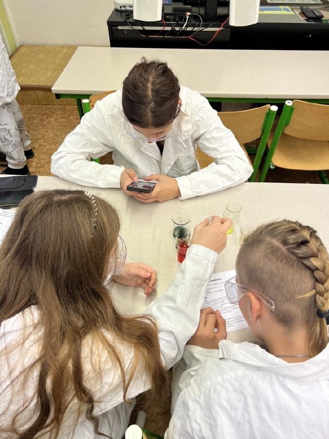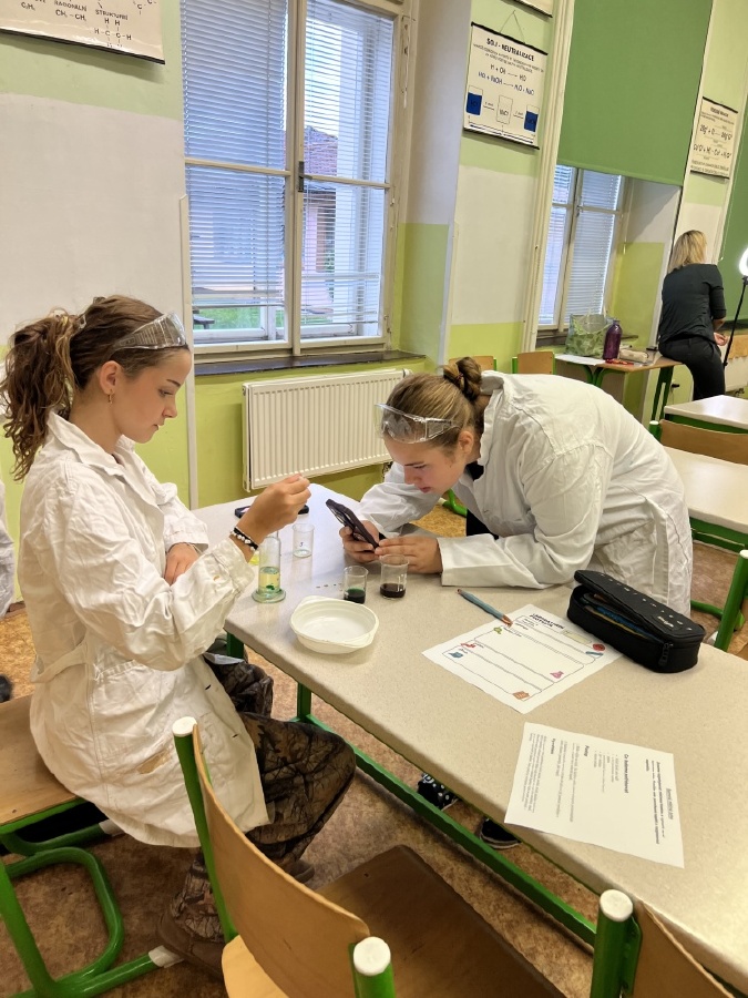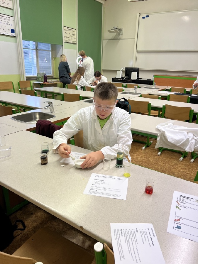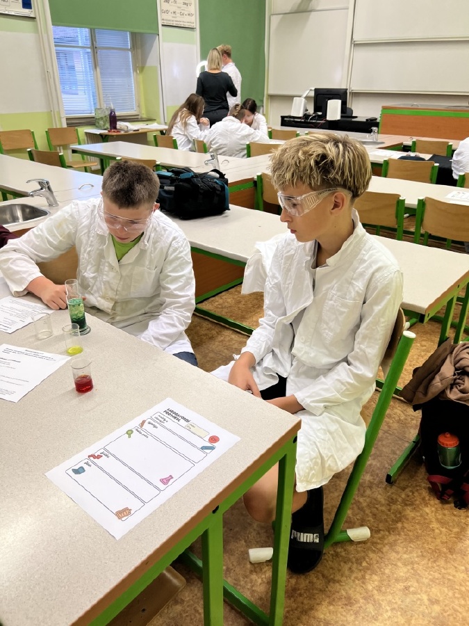 Naši osmáci si v hodině chemie vyzkoušeli barevné pokusy, při kterých sledovali fascinující proměny látek. Laboratoř se na chvíli proměnila v malé fotografické studio – žáci zachycovali krásu chemických reakcí na profesionálně laděných snímcích. Práci si naplno užili a prokázali, že i chemie může být nejen zajímavá, ale i krásná. Ing. Šárka Nováková