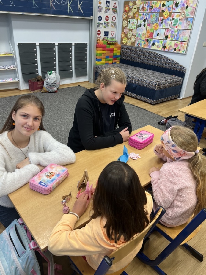 V pondělí 6.října proběhla seznamovací schůzka prvňáčků z céka s jejich patrony ze sedmičky. Setkání to bylo velmi milé a přes úvodní nervozitu si každý našel svého kamaráda. Sedmáci si připravili pro prvňáčky pěkné osobní dárečky v podobě origami. Všichni si společný čas užili, více se poznali a domluvili se, že se zase brzy uvidí. Bc. Lucie Kubínová, Ing. Šárka Nováková