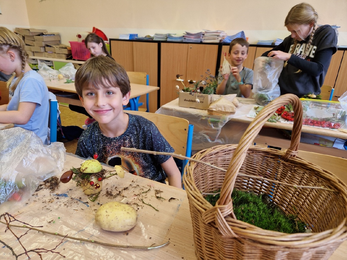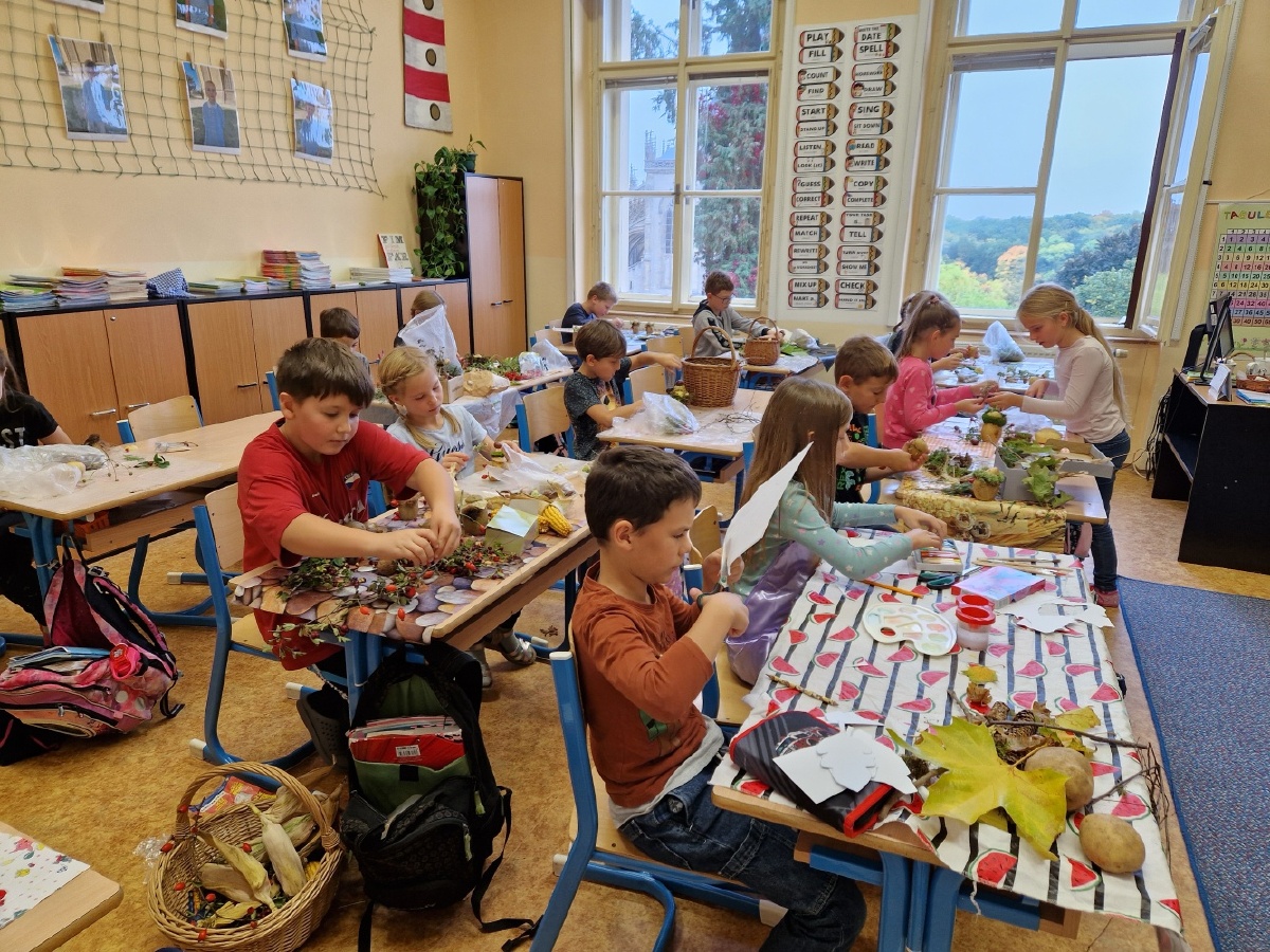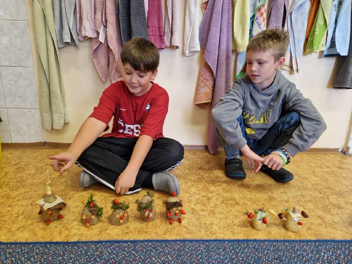 Podzimní příroda nabízí spoustu krásného a originálního přírodního materiálu pro kreativní tvoření. Toho využili třeťáci z áčka. Nasbírali různé přírodniny a vyráběli z nich lesní skřítky. Vymysleli jim jména, charakterové vlastnosti a ve skupinách si zahráli lesní příběhy. Tvoření je moc bavilo! Mgr. Marcela Chroustovská