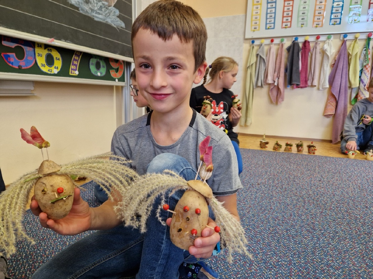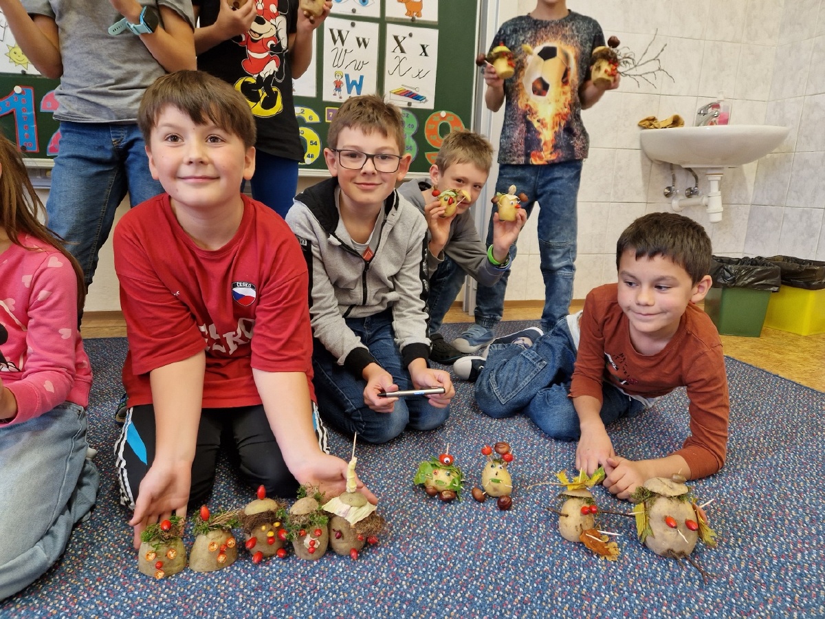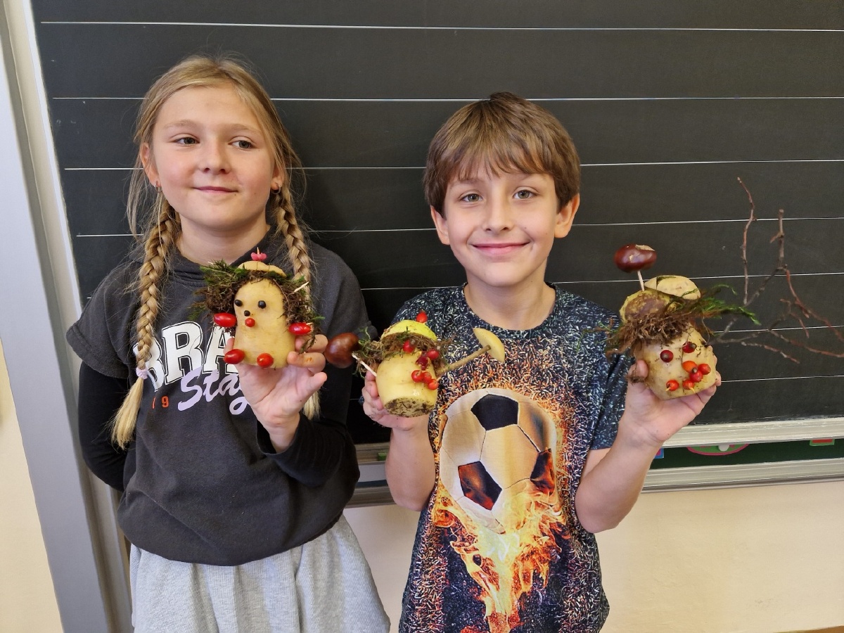 Podzimní příroda nabízí spoustu krásného a originálního přírodního materiálu pro kreativní tvoření. Toho využili třeťáci z áčka. Nasbírali různé přírodniny a vyráběli z nich lesní skřítky. Vymysleli jim jména, charakterové vlastnosti a ve skupinách si zahráli lesní příběhy. Tvoření je moc bavilo! Mgr. Marcela Chroustovská