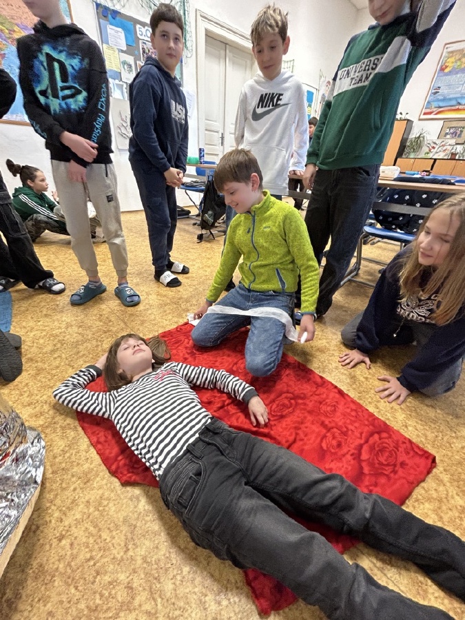 Děti z V. C se dnes v rámci projektového dne věnovaly člověku a jeho tělu. První část patřila informacím a nácviku první pomoci. Následovaly scénky s ukázkami, jak by neměla první pomoc vypadat a následně správný postup při poskytování první pomoci. Druhou část jsme věnovali práci ve skupinách a čekala nás tři centra s úkoly. Centrum rekordů, kde jsme poměřovali lidské rozměry se zvířecími. Centrum smyslů, zde jsme zkoumali chutě, vůně a procvičili jsme si hmat. V centru mediků a angličtiny nás čekalo složení lidské kostry, pojmenování částí těla, složení a pojmenování lidských orgánů nejen v českém jazyce, ale také v angličtině. Celý den jsme uzavřeli prezentacemi výsledků, hodnocením a zpětnou vazbou. Děti byly úžasné, patří jim velká pochvala. Společný čas jsme si užili na maximum a jako bonus jsme se dozvěděli i něco nového. Mgr. Daniela Podoláková a Mgr. Nikola Lukešová