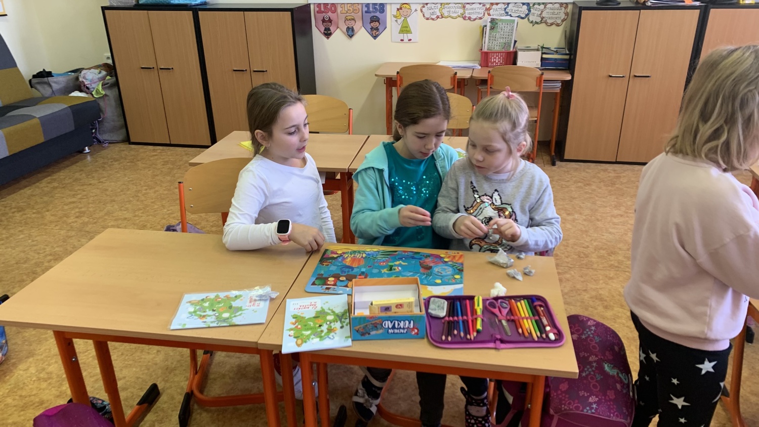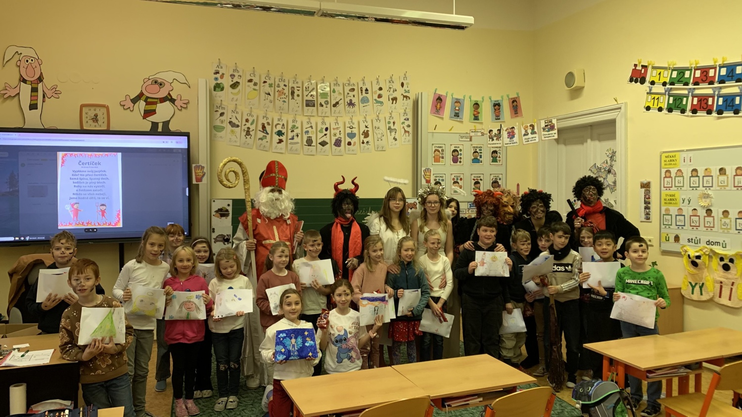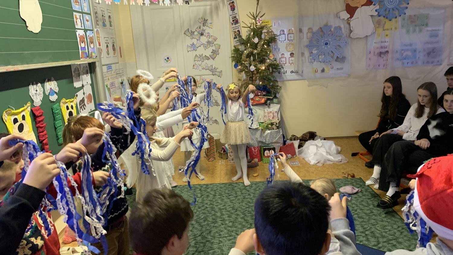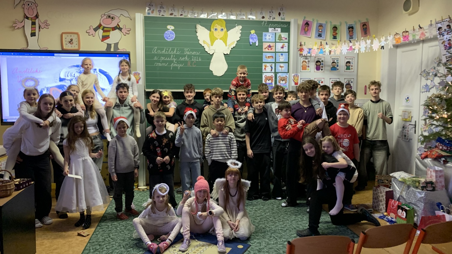 Druháčci z céčka měli v prosinci opravdu nabitý program. Navštívili městskou knihovnu, výstavu na Hrádku, kde si vyrobili anděla z korálků, také vzorně plnili každou výzvu ve školním adventním kalendáři - vyráběli společné přání, hráli piškvorkové turnaje, stali se na chvíli pány učiteli nebo hráli staré dobré (nejen) deskové hry….Vrcholem byla třídní besídka, kterou si pečlivě secvičili a zahráli rodičům, spolužákům i svým patronům z IX.C. Pozvali i paní ředitelku a dostali velikou pochvalu - hráli a zpívali krásně, nám dospělým, ukáply i slzy dojetí. Bohatou nadílku si opravdu všichni zasloužili. Mgr. Jaroslava Šibravová