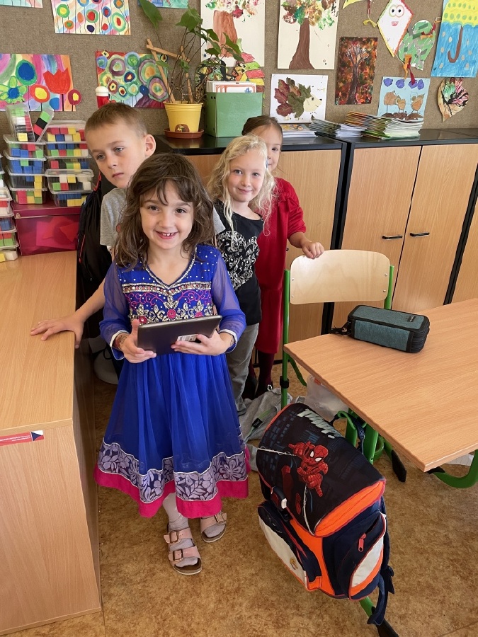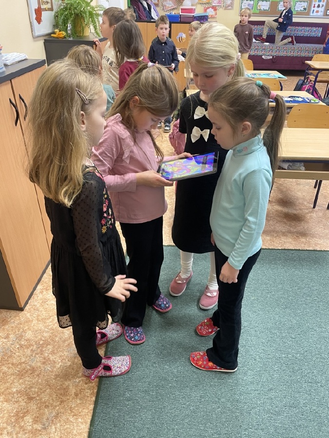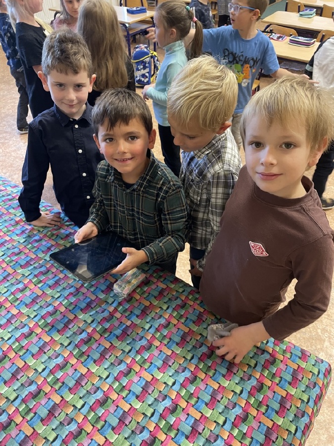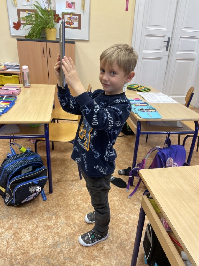 Prvňáčci z béčka a déčka si během tandemové výuky vyzkoušeli, jaké to je stát se opravdovými fotografy. S tablety v ruce hledali a fotili geometrické tvary v prostoru kolem sebe. Společně jsme si také ukázali, jak vypadaly fotoaparáty dříve a jaké používáme dnes. Celé focení bylo plné objevování a zábavy. Mgr. Martina Výborná
