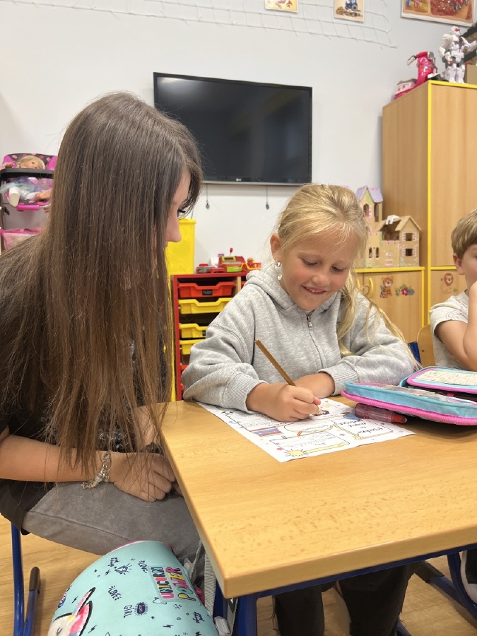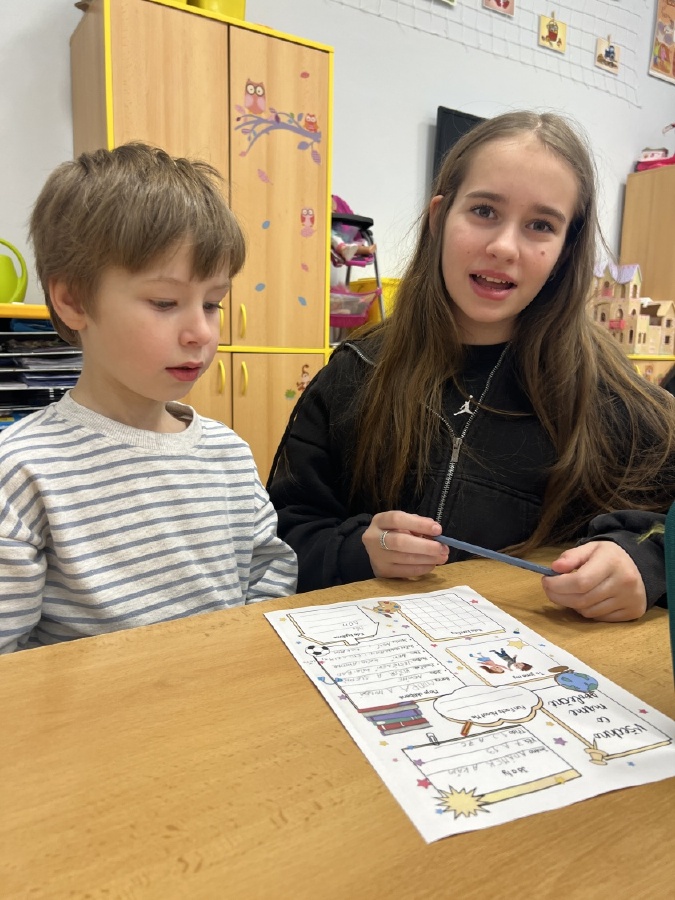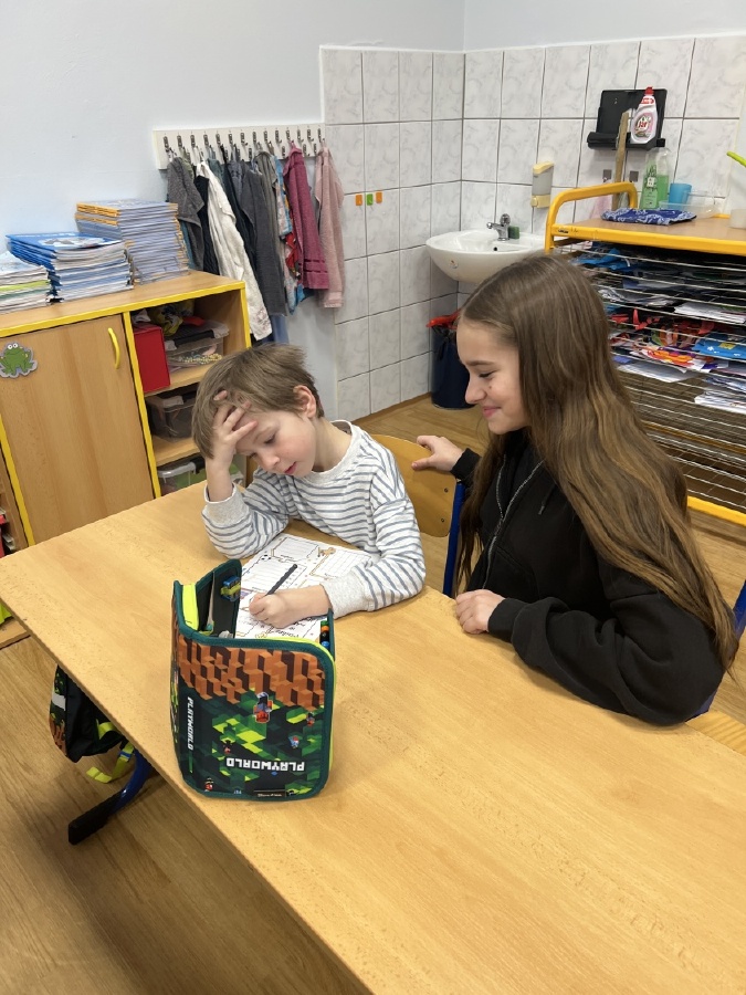 V pondělí 30. března se v rámci patronátů odehrálo milé setkání sedmáků a prvňáčků z céčka. Sedmáci přišli navštívit své mladší kamarády – a nepřišli s prázdnou! Přinesli jim vlastnoručně vyrobené květináče z plastových lahví, které ozdobili a osadili jarními květinami. Ukázali tak, že i obyčejná plastová lahev může dostat druhý život a proměnit se v něco hezkého a užitečného. Společný čas ale nebyl jen o dárcích. Velcí a malí pomocí krátkého dotazníku zjišťovali, co mají společného, co je baví a co je pro ně důležité. Bylo krásné sledovat, jak si k sobě rychle nacházejí cestu. Celé setkání se neslo v radostné a přátelské atmosféře. Děkujeme třídě VII .C za milou iniciativu a těšíme se na další společné chvíle! Ing. Šárka Nováková, Bc. Lucie Kubínová