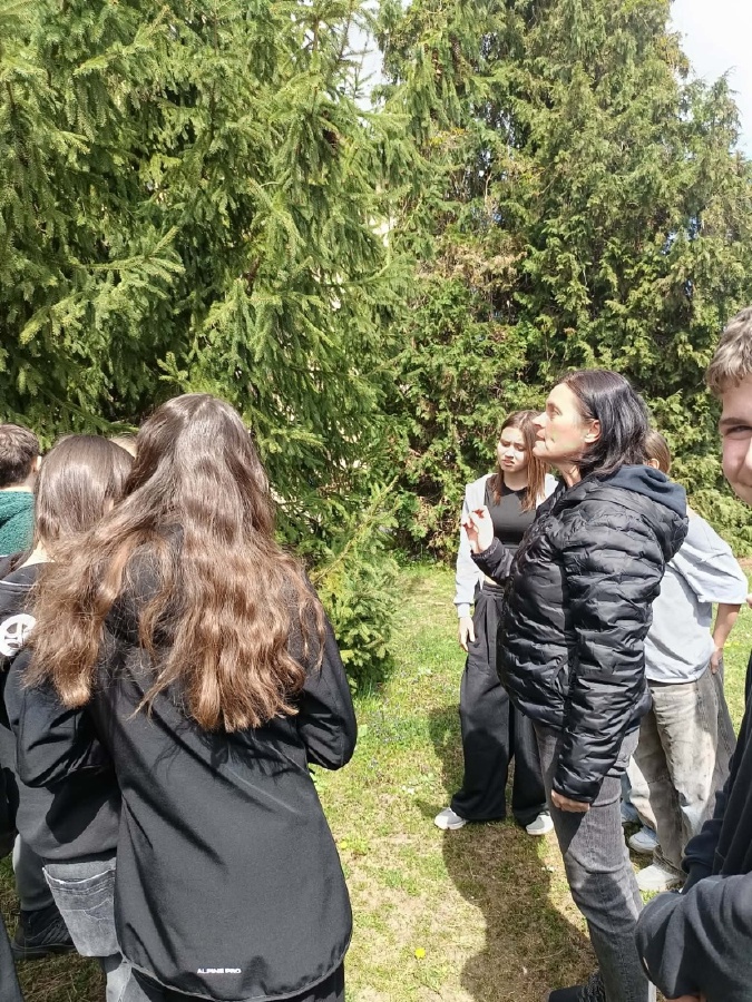 Ve čtvrtek 23. dubna vyrazili sedmáci z béčka na první jarní pozorování rostlin. Nešli daleko, svá pozorování zahájili hned před naši školou. K vidění je tady borovice černá a její dlouhé jehlice vyrůstající po dvou, právě kvetoucí smrk a přivoněli jsme také k jehličí cypřišku. Mgr. Jana Kořínková
