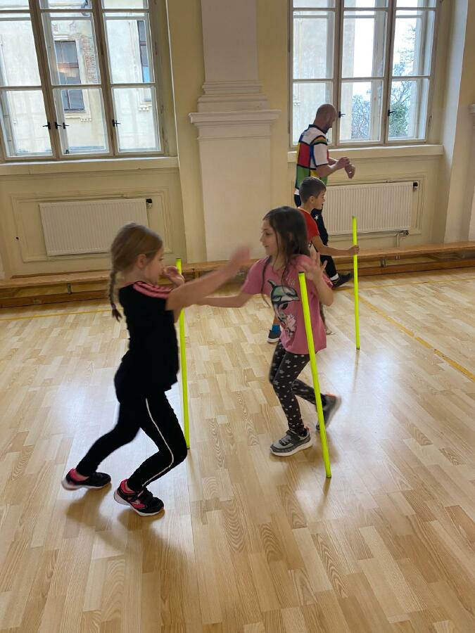 Děti z I. D jsou nadšené z hodin tělesné výchovy, které pro ně skvěle připravují trenéři v rámci projektu Trenéři do škol - Bedřich Franc, Josef Salák, David Holub a Andrea Kudláčková. Děti si už stihly vyzkoušet řadu netradičních soutěží a pohybových aktivit. Učí se spolupracovat, plnit dané úkoly a velký důraz je kladen také na fair play chování. Hodiny tělesné výchovy probíhají ve velmi radostné a přátelské atmosféře. Pohyb je pro děti zábavou a přirozenou součástí školního dne. Mgr. Štěpánka Menová