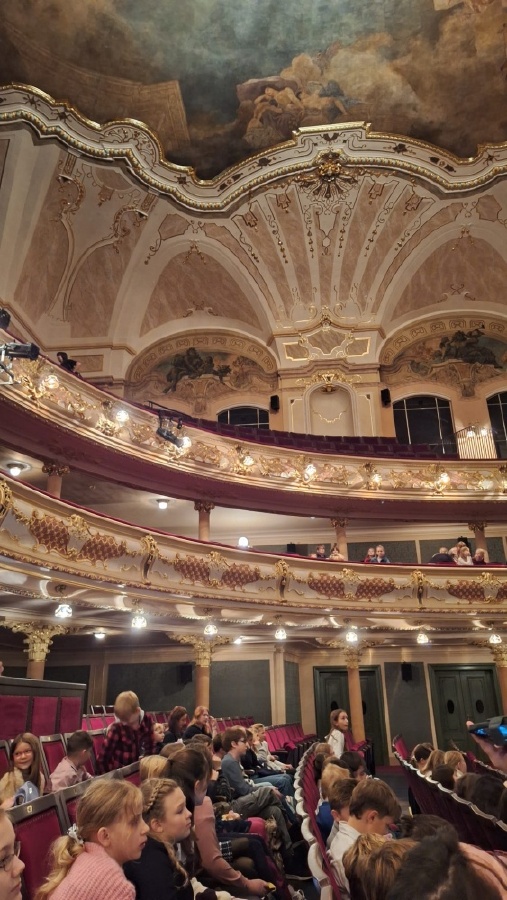 Ve pondělí 3. listopadu se naši páťáci a šesťáci vydali na dlouho očekávaný výlet do Hudebního divadla Karlín v Praze, kde zhlédli muzikálové zpracování známé Andersenovy pohádky Sněhová královna. Ráno nás sice přivítalo deštivé a nepříznivé počasí, ale to nikomu náladu nepokazilo. V divadle nás čekala jak působivá podívaná plná hudby, světel a emocí, tak námi oblíbený David Gránský v roli Kaye. Známý příběh o síle lásky, přátelství a odvaze měl spád, náboj i napětí, nechyběly ani dojemné okamžiky. Fotografie z akce zachycují dobrou náladu, která nás provázela celý den. Výlet se vydařil a domů jsme se vraceli plní krásných zážitků. Mgr. Šárka Dáňová
