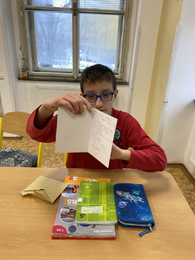 Před vánočními svátky jsme započali spolupráci se španělskou školou ve Els Pallaresos v Catalonii - dopisujeme si. A to žádné e-maily ani esemesky, ale rukou psané dopisy posílané poštou. Na naše vánoční přání, která napsaly děti z V. B a V. D, jsme v lednu dostali odpovědi. A protože už toho páťáci uměli v lednu zase o něco více z angličtiny, i jejich další dopisy byly trochu obsáhlejší. Procvičili jsme tím nejen aktuálně probíraná témata, ve kterých děti vylepšují svou schopnost vyjádřit se v anglických větách o sobě, své rodině, svých preferencích a zálibách, ale i vhodný obsah a části dopisu. S dopomocí to zvládli všichni! Je jiné učit se při školní výuce a poté být zodpovědný za to, co anglicky napíšu pro někoho ve Španělsku tak, aby mi porozuměl a pochopil mé myšlenky. A právě to zažívaly děti při projektu v dopisování. Takže se vylepšují i ve své schopnosti písemné komunikace a čitelného psaní. A kdy jste dostali naposledy dopis Vy? Že je to moc milé potěšení, by vám páťáci už mohli vyprávět... Mgr. Alena Tyrkasová, Mgr. Nikola Lukešová, Mgr. Kristýna Hurychová