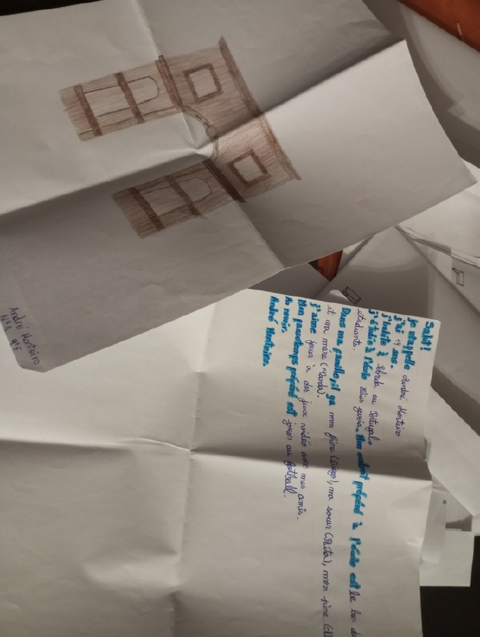 Náš projekt s portugalskou školou v Sobredě pokračuje. Právě jsme obdrželi velkou obálku obsahující individuální dopisy od portugalských žáků, kromě dopisů nám poslali také své krásné obrázky. Ve svých dopisech se podělili o informace o svém věku, oblíbeném místě ve škole, rodině a trávení volného času. Zjistili jsme, že drtivá většina chlapců jsou nadšenci do fotbalu, Zároveň jsme ale ocenili jejich velmi úhledné písmo. Jejich úroveň francouzštiny je srovnatelná s našimi žáky, s francouzštinou teprve začínají. Těšíme se na další výměnu dopisů a aktivit a na pokračování spolupráce s našimi portugalskými přáteli! Mgr. Hana Votavová