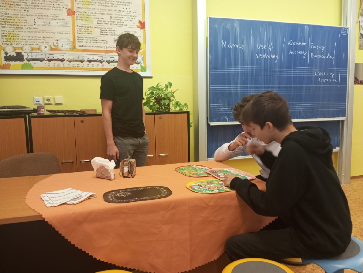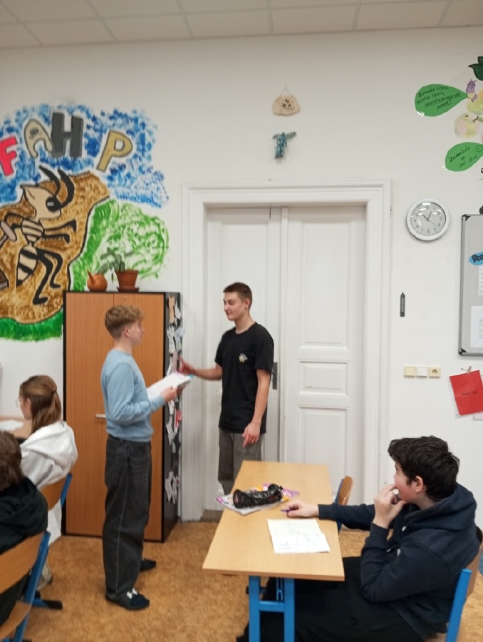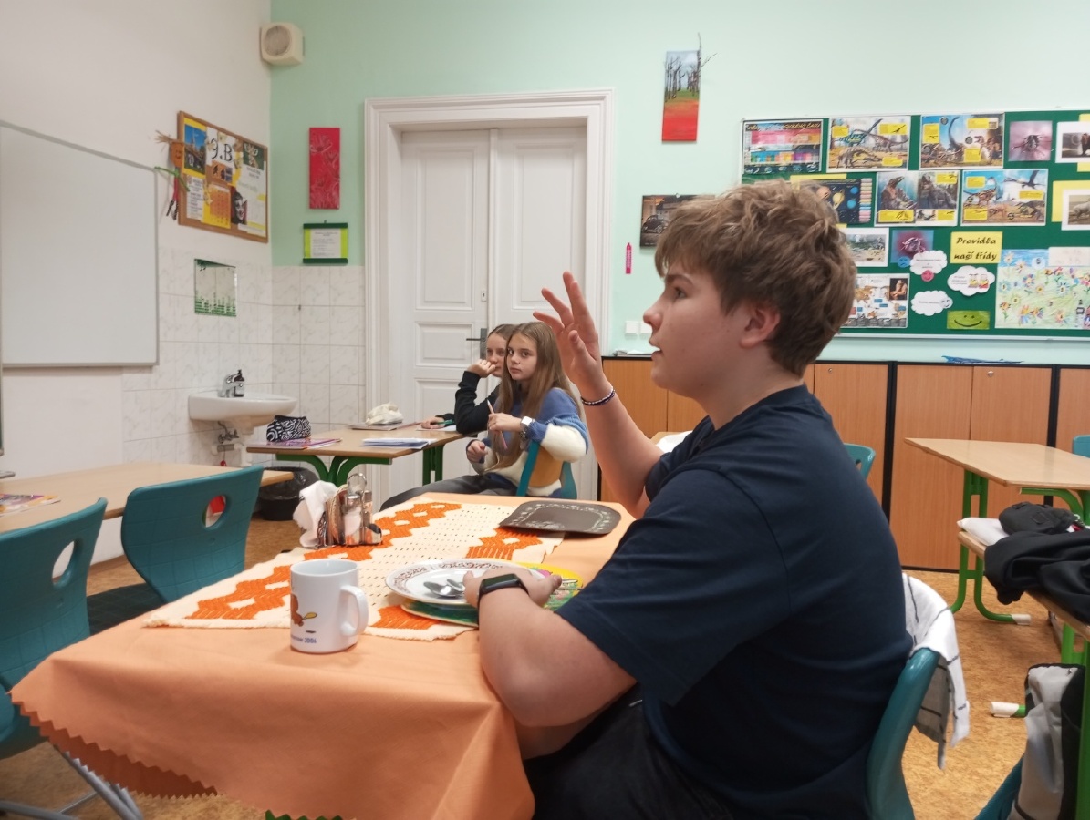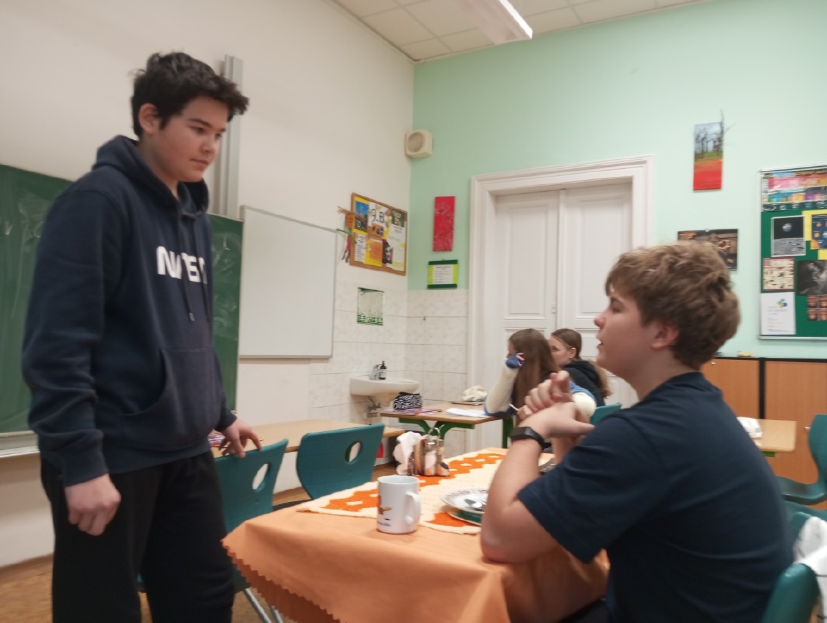 V rámci inovativního přístupu k výuce angličtiny, inspirovaného návštěvou holandské školy v rámci projektu Erasmus+ (job-shadowing), si žáci všech 9. tříd vyzkoušeli dlouhodobý projekt „Food and Catering“, který propojuje teoretické znalosti s praktickými dovednostmi. Prvním výstupem projektu byl reálný dialog v restauraci, předvedený v anglickém jazyce, kde si studenti vyzkoušeli role zákazníka a číšníka. Před nácvikem dialogu probíhala cílená příprava – opakování a procvičování slovní zásoby a frází prostřednictvím cvičení, poslechů nebo videí. Dialog sloužil jako praktický test jazykových dovedností – žáci měli možnost předvést celý proces návštěvy v restauraci, od přivítání a uvedení ke stolu, přes objednání jídla a pití, až po závěrečné placení. Tím ukázali, jak by se dokázali orientovat a komunikovat v reálné situaci v zahraniční restauraci a vyzkoušeli si autentickou konverzací. Ve fotogalerii z hodin můžete vidět, že si celý projekt studenti opravdu užívali. Mgr. Hana Votavová