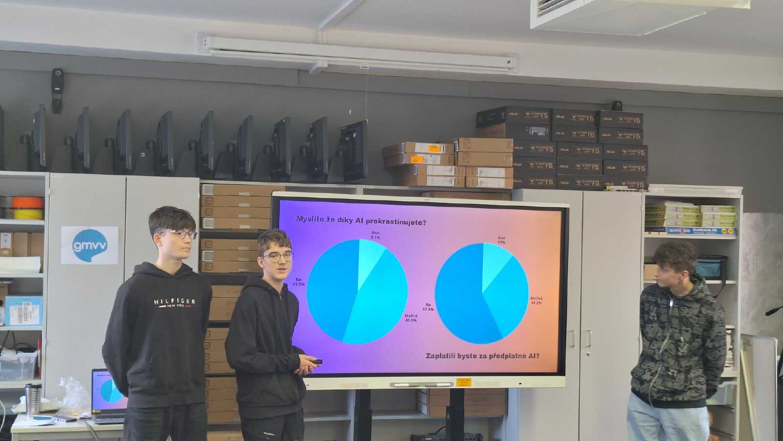 Velmi dobře si vedly také naše chlapecké týmy ve složení Jan Bartoš, Jáchym Jelínek a Antonín Zubec, Jakub Pospíšil, Adam Závada. Přestože se tentokrát mezi prvními třemi neumístily, předvedly kvalitní výkony a získaly cenné zkušenosti do dalších ročníků soutěže. Všem soutěžícím patří velké poděkování za jejich práci a nasazení, za skvělou reprezentaci školy a za odvahu postavit se před porotu i publikum. Děvčatům srdečně gratulujeme k vítězství a budeme jim držet palce na květnovém Grandfinále v Mladé Boleslavi. Mgr. Monika Krejčová