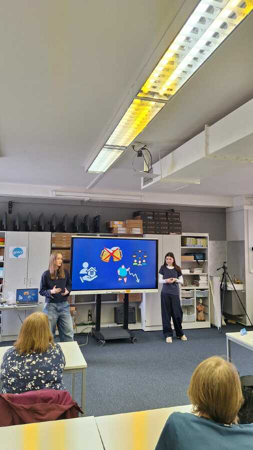 V pondělí 16. března se na Gymnáziu mezinárodních a veřejných vztahů v Praze uskutečnilo krajské kolo soutěže Prezentiáda, v kategorii základních škol a nižších gymnázií. Celkem bylo nominováno deset týmů ze Středočeského kraje, které představily letošní témata Kapka v moři a Na hraně. Všechny týmy se s vybranými tématy vyrovnaly velmi dobře – prezentace byly nápadité, promyšlené a ukázaly, že soutěžící dokážou pracovat nejen s informacemi, ale také ukázaly, že soutěžící nad zadanými tématy přemýšlejí do hloubky, dokážou formulovat vlastní názory a postoje a hledat různá východiska. Po velmi napínavém souboji se porota dlouhou hodinu radila o konečném pořadí účastníků. Na 3. a 2. místě se nakonec umístily týmy z Mladé Boleslavi. K velkému překvapení a obrovské radosti získal 1. místo náš dívčí tým Léto a Prázdniny ve složení Eliška Skaláková a Klára Vlášková, který si tím vybojoval postup do Grandfinále, kde se utká s nejlepšími týmy z celé České republiky i Slovenska.