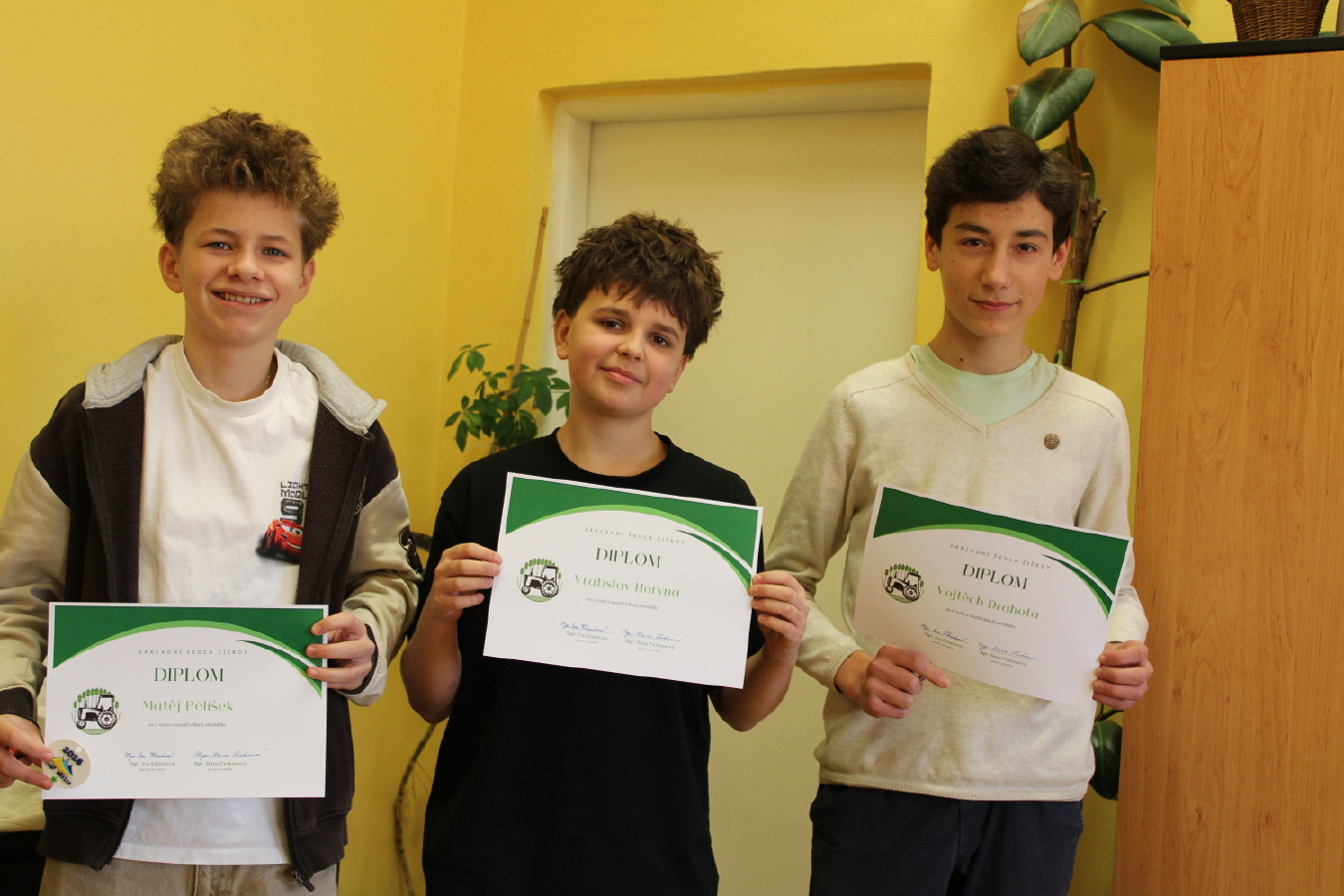 Všem oceněným gratulujeme k výborným výsledkům. Tito žáci budou naši školu reprezentovat ve druhém, regionálním semifinálovém kole soutěže, kde změří své schopnosti s dalšími mladými zemědělci z okolních škol. Náhradnicí a zároveň čtvrtou v pořadí se stala Kateřina Francová (VII.B).