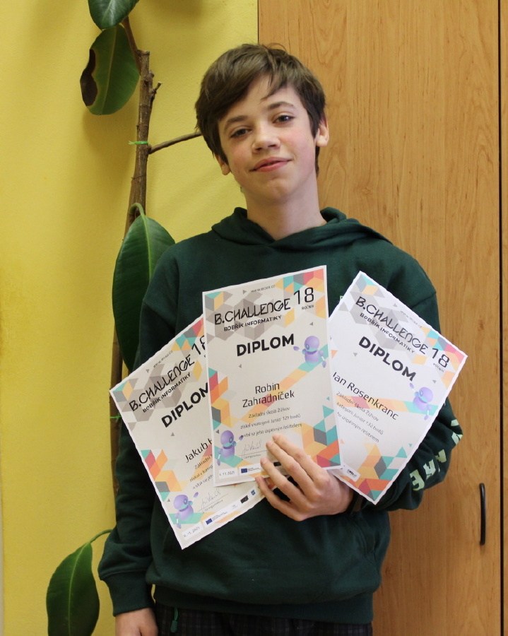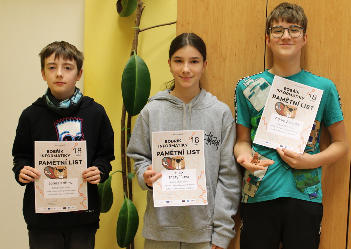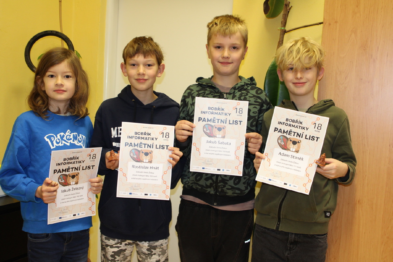 Prvních čtrnáct dní v listopadu proběhla v naší škole informatická soutěž s názvem Bobřík informatiky. Soutěže se účastníme již několik let. Jejím cílem je seznamovat žáky s tím, co to jsou informatické úlohy a problémy, a že informatika není totéž co ovládání počítače. Soutěží se v pěti věkových kategoriích od 3. ročníku ZŠ po maturitu. Soutěžící odpovídají na otázky z oblasti informatického myšlení, algoritmizace, porozumění informacím, práce s daty, informačních systémů a modelování, z oblasti digitálních technologií a společenských aspektů jejich použití. Soutěžící vyplňují online test, v němž vybírají z několika odpovědí nebo vybírají či přemísťují objekty na obrazovce, případně sestavují program z bloků. Kdo byli naši nejúspěšnější bobříci v jednotlivých kategoriích?