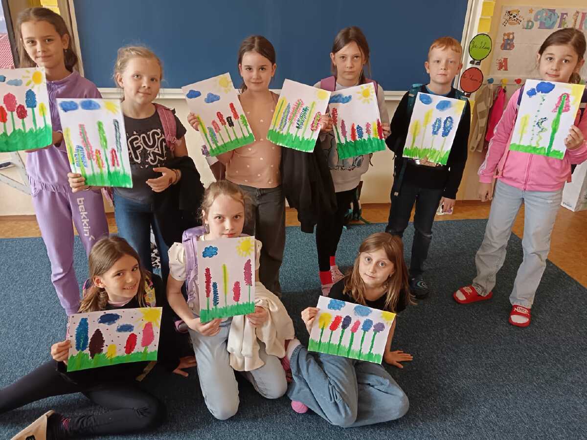 Březen se nese ve znamení jarního tvoření, velikonočních příprav a intenzivních venkovních aktivit. Naše tvoření směřuje k jaru, díky krásnému počasí trávíme s dětmi hodně času venku, užíváme si prvního sluníčka, pohybových her a mnoha dalších aktivit. Zimní výzdoba se mění na jarní, proto kreslení a malování má toto téma.