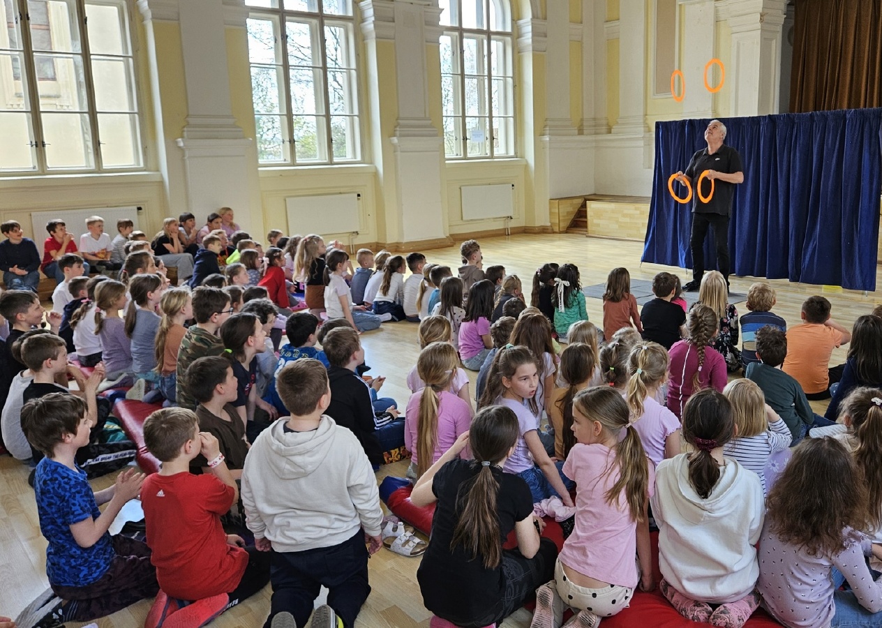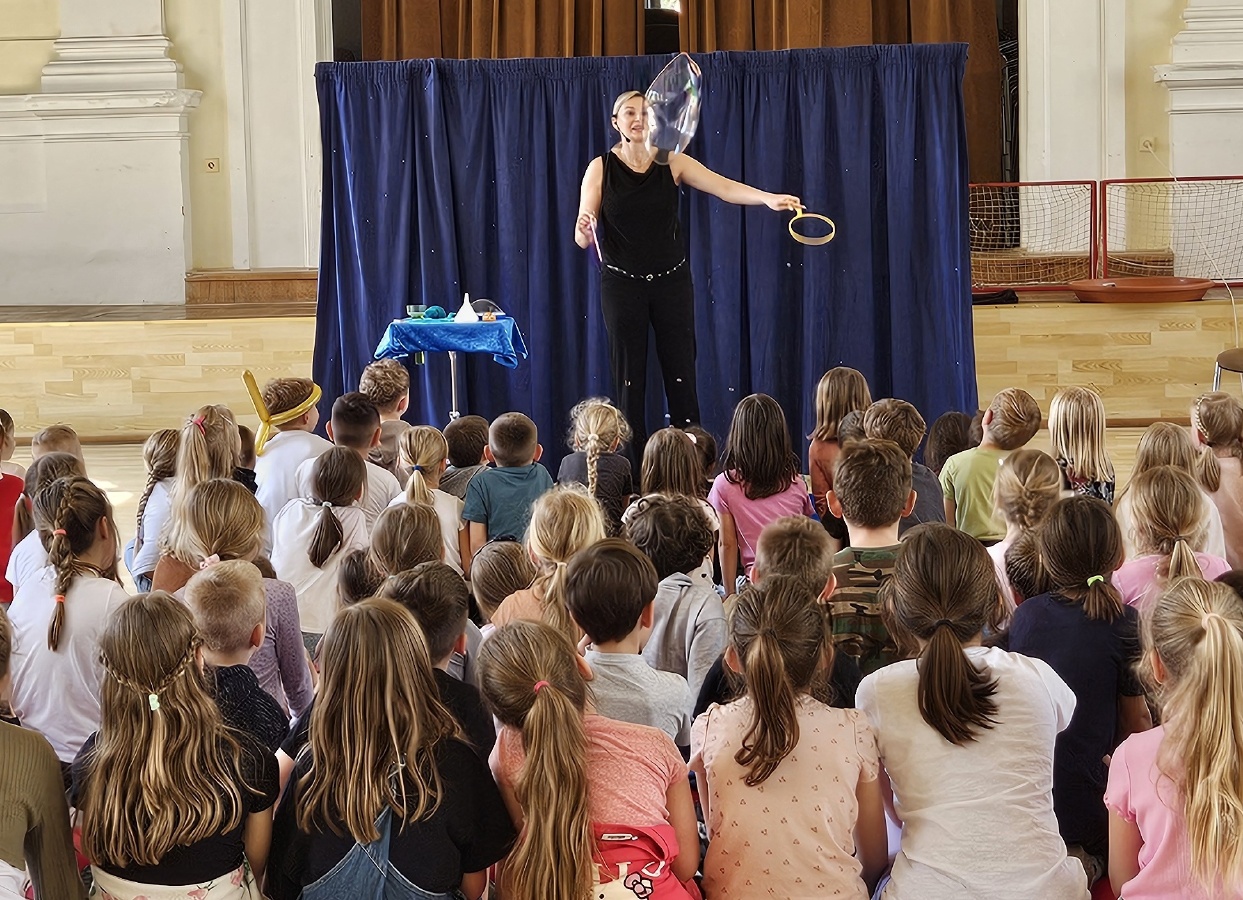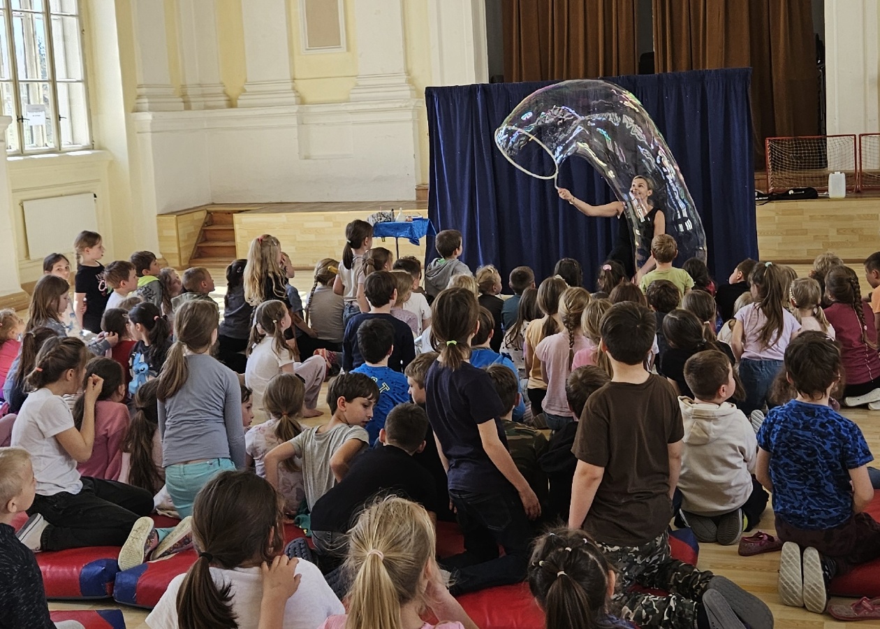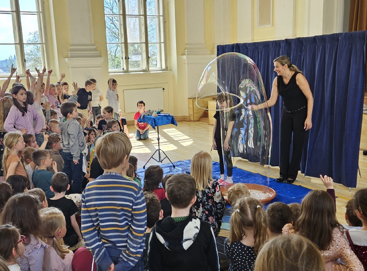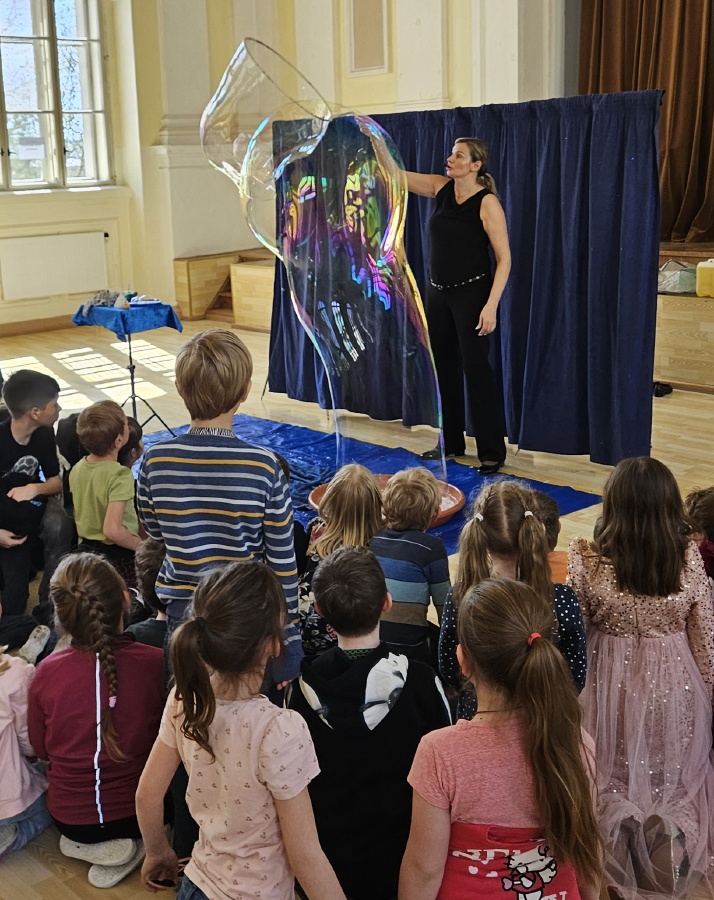 Ve středu 15.dubna nás navštívila kouzelnice Ingrid se svojí bublinovou show. Představení plné žonglování, cvičení s pejskem, kreací s kruhy a kouzelnickým překvapením děti napjatě sledovaly a do vystoupení se i aktivně zapojily. Vyvrcholením představení byla bublinová show. Děti okouzlily bubliny jak velké, tak malé. Nakonec je potěšilo, když dostaly možnost nechat se obklopit velkou bublinou.