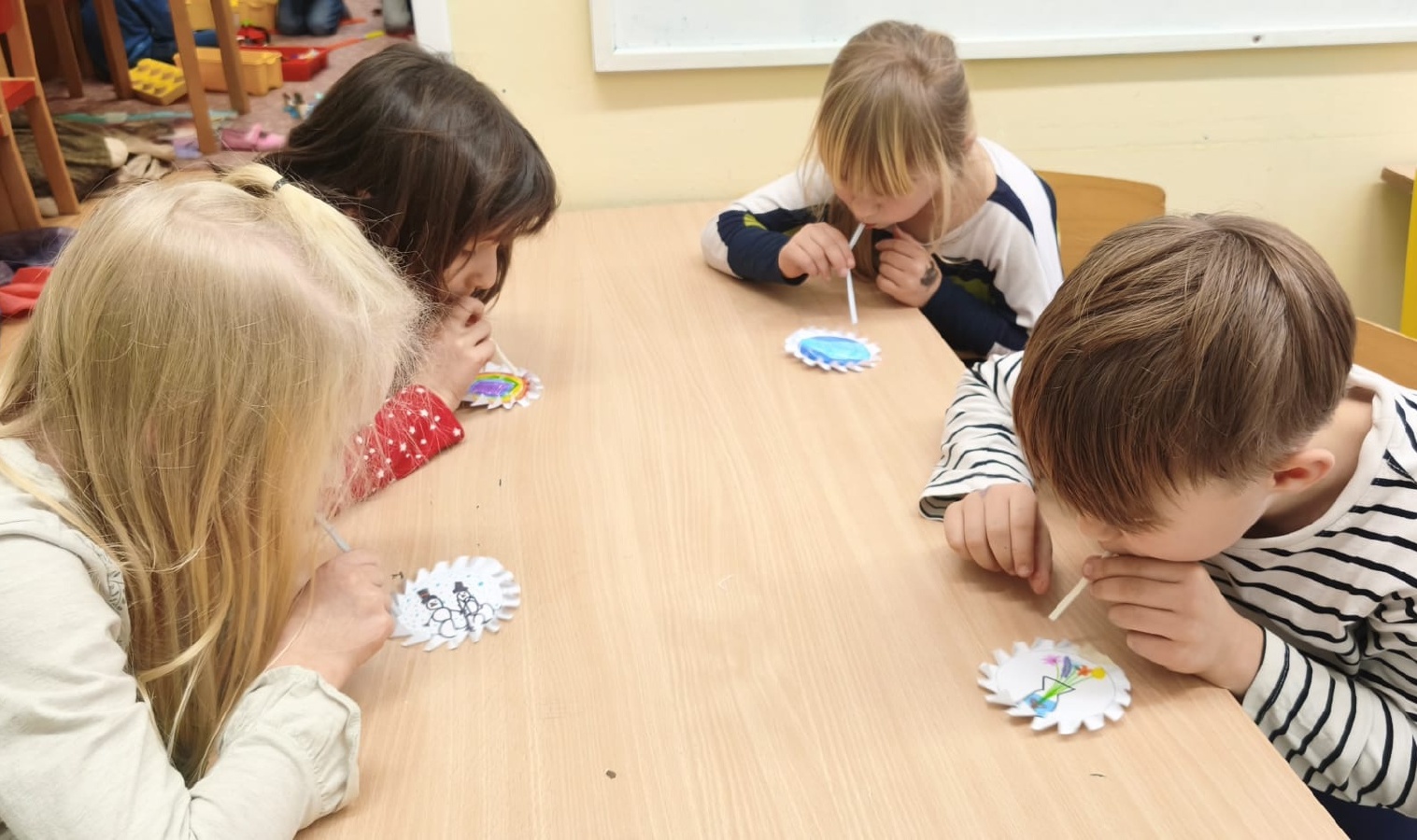 Druhou půlku ledna jsme věnovali ve družině sportování, zimním radovánkám - kde jsme využili sněhové nadílky pro hry na sněhu a stavění sněhuláků, tvořili jsme například karnevalové masky, obrázky se zimní tématikou a také hráli s oblíbenými stavebnicemi či zajímavé hry.