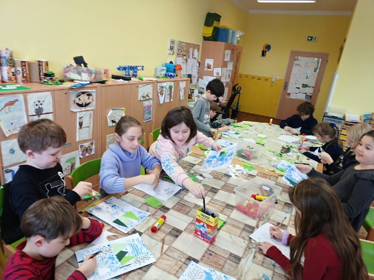 Napříč lednem probíráme s dětmi ve družině zimní témata - počasí venku, sníh, mráz, led a tomu přizpůsobujeme i naše tvoření.