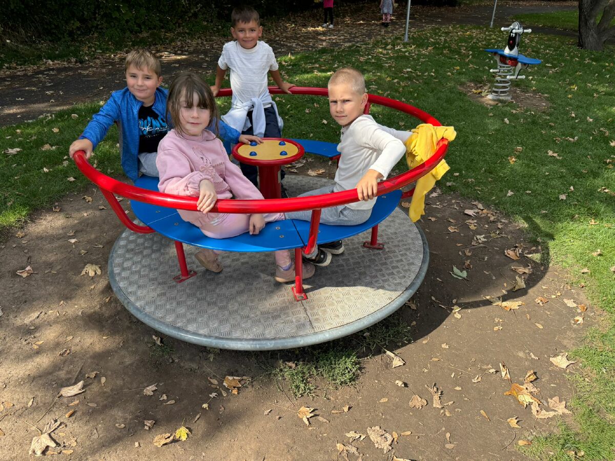 V průběhu celého měsíce chodíme během vycházek na multifunkční dětská hřiště v okolí školy nebo do přírody či nedalekého parku. Využili jsme příznivého počasí, které naštěstí trvalo skoro celý měsíc.