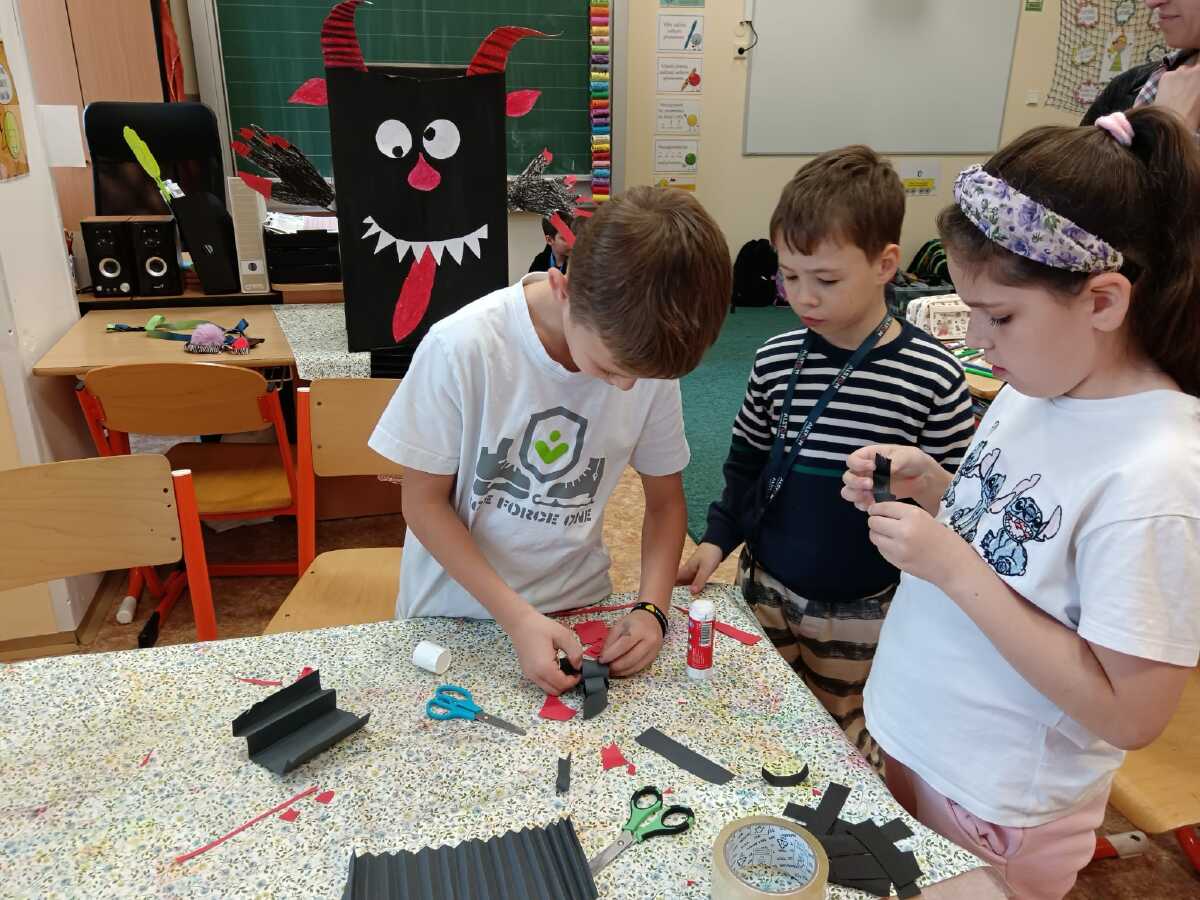 Děti z naší družiny se s nadšením zapojily do výroby prostorových 3D výrobků, které budou součástí chystané výstavy Peklo v Dominiku. Při práci využily různé materiály i svou fantazii a výsledkem jsou originální a nápadité výtvory, které stojí za zhlédnutí. Zapojilo se všech 10 oddělení. Výstava se bude konat od 3. listopadu do 7. prosince v DDM Kutná Hora a určitě nabídne nejen pohled na dětskou tvořivost, ale také ukázku šikovnosti a týmové spolupráce našich malých výtvarníků.