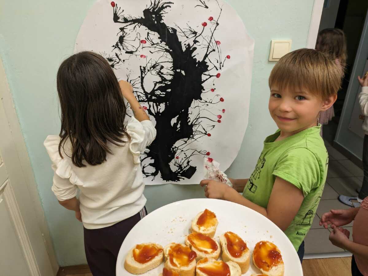 Přišel podzim a chřipka s rýmou obcházejí naši školu. V oddělení Krtečků si proto udělali Šípkový den, aby si připomněli, jaké vitamíny šípek obsahuje a jak můžeme bojovat proti nemocem a nachlazení. Ochutnali šípkový džem, uvařili si šípkový časj a namalovali šípky na větvičku, kterou vytvořili rozfoukáním tuší.
