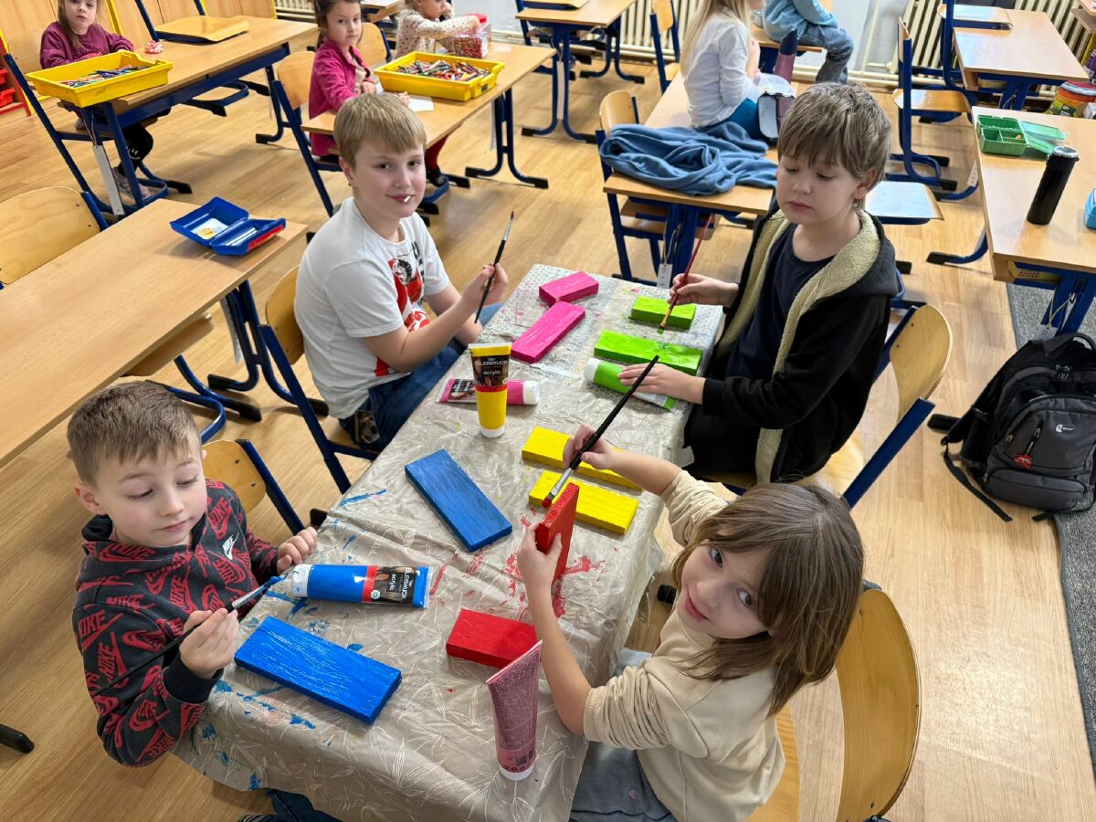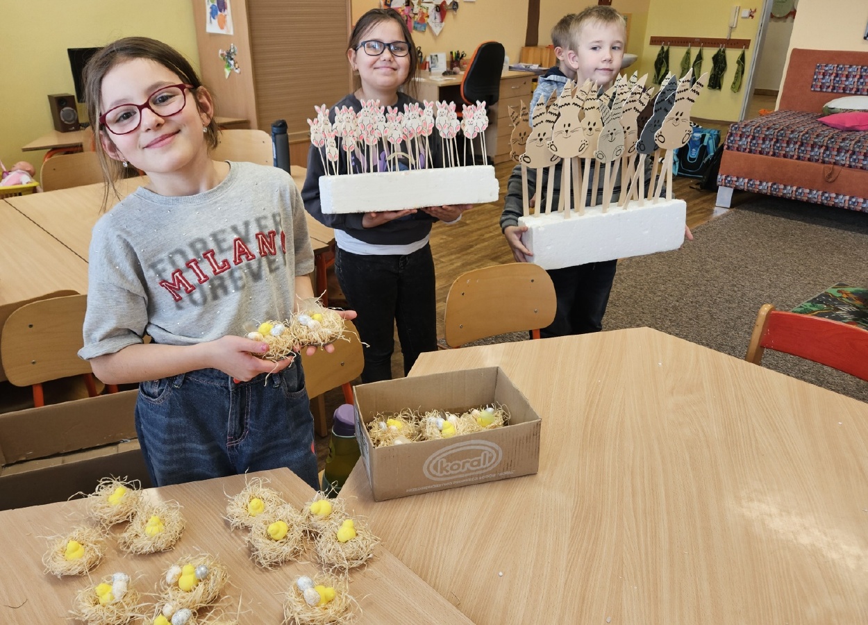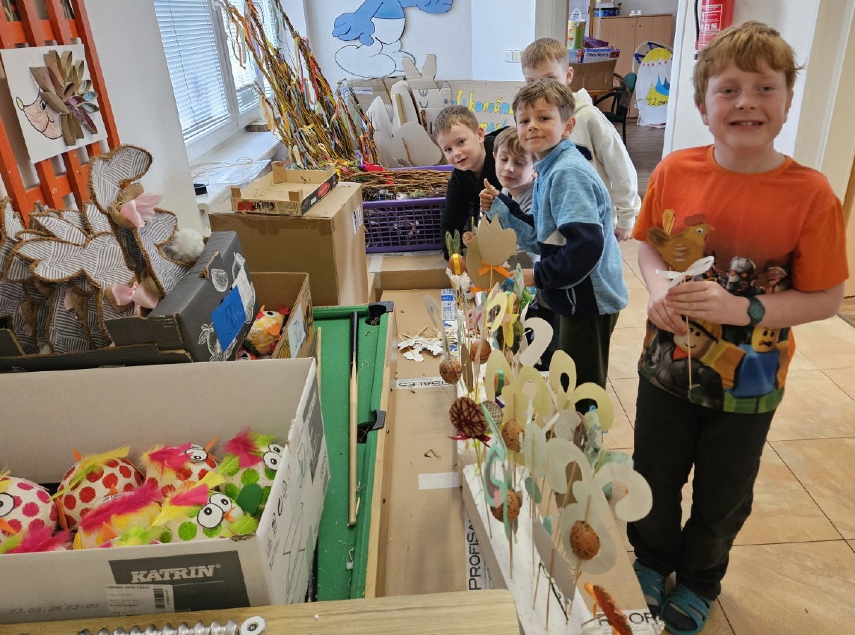Ve školní družině se v těchto dnech věnujeme přípravám na blížící se velikonoční jarmark, který se bude konat v úterý 24.března v okolí hlavní budovy školní družiny. Děti tvoří řadu dekorací s jarními a velikonočními náměty, pletou pomlázky, vyrábí zápichy, zdobí kraslice, věnce, sejou osení, atd. Starší spolužáci ze školy nám s přípravou ochotně pomáhají.