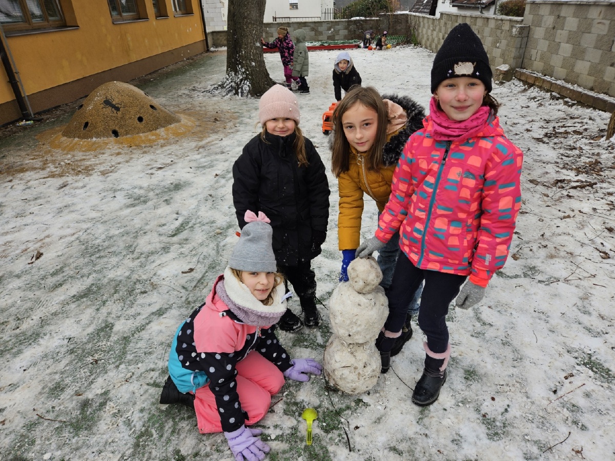 Dnes jsme si první sníh letošního roku ve školní družině opravdu užíváme, jak ke sněhovým hrátkám na hřišti, tak na vycházce. Se sněhem je opravdu spoustu zábavy a přejeme si, aby sníh vydržel co nejdéle.