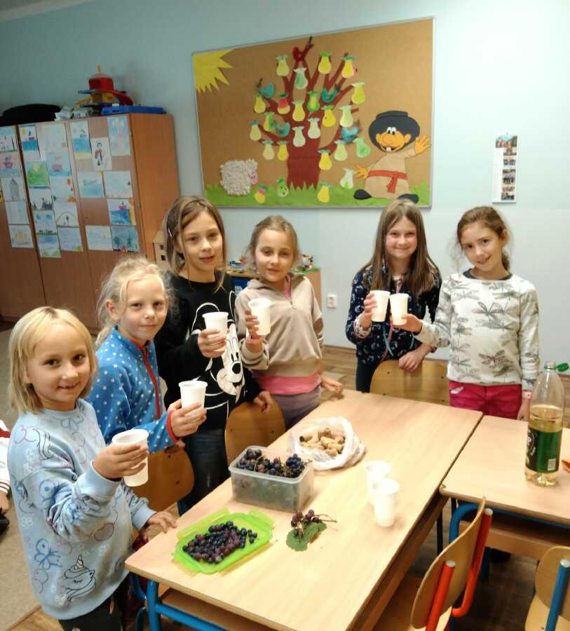 Děti ze školní družiny si udělaly zajímavé odpoledne na téma Vinobraní. Seznámily se s tím, co to vůbec znamená, namalovaly si víno podle skutečné předlohy a také ochutnaly hroznový nápoj.